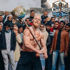 Moreover, even before this, we can see that in his ‘community’ and ‘pilgrimage’ style videos, he centralizes himself in the video output. What is primarily held up for our inspection and admiration is him – his body in action. We often see Eggert performing with extremely heavy gadas and other clubs, to the delight and amazement of his Indian audience.